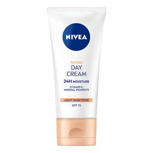 Nivea Tinted Day Cream Light er en let farvet dagcreme, der passer til lyse hudtoner. Denne dagcreme kombinerer hudpleje med en naturlig dækning og indeholder E-vitamin og mineralpigmenter, der fugter huden i op til 24 timer. Den farvede dagcreme udjævner hudtonen og dækker mindre ujævnheder, hvilket giver en naturligt strålende og jævn teint.