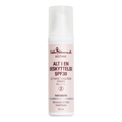 Alt i en beskyttelse 30 SPF fra Pudderdåserne er en let farvet dagcreme til beskytte af solens UV-stråler
