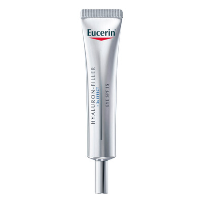 Eucerin Hyaluron-Filler Eye SPF15 er en øjencreme, der effektivt reducerer smilerynker og fine linjer omkring øjnene. Den indeholder en kombination af høj- og lavmolekylær hyaluronsyre, som fugter huden i dybden og udfylder rynker indefra. Glycine saponin stimulerer hudens naturlige hyaluronsyreproduktion, hvilket forbedrer hudens elasticitet og fasthed.