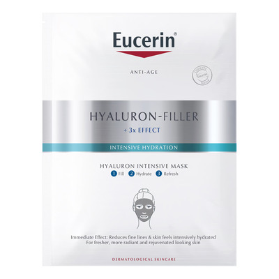 Eucerin Hyaluron-Filler Hyaluron Intensive Mask er en fugtgivende anti-age maske, der giver huden et friskere udseende. Masken indeholder både høj- og lavmolekylær hyaluronsyre, som tilfører intens fugt og reducerer fine linjer. Den højmolekylære hyaluronsyre arbejder i hudens øverste lag og forbedrer hydreringen, mens den lavmolekylære trænger dybere ind og understøtter hudens struktur.