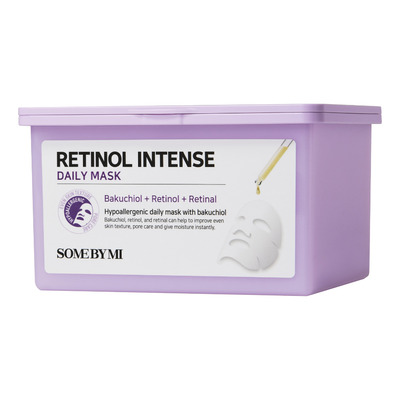 Some By Mi Retinol Intense Daily Mask er en pakke med 30 sheetmasker, der reducerer fine linjer og pigmentpletter