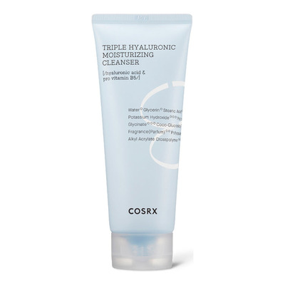 COSRX Hydrium Triple Hyaluronic Moisture Cleanser er en fugtgivende, vandbaseret ansigtsrens, der passer til alle hudtyper. Denne rens fjerner skånsomt skidt, snavs, støv og makeup, samtidig med at hudens fugtbarriere bevares. Indholdet af tre slags hyaluronsyrer og beroligende panthenol bidrager også til en sund hudbarriere. Denne rens er ideel til sart, sensitiv, reaktiv og uren hud. Den er mild og vil lindre irritationer og rødme, hvilket gør den velegnet til tørre hudtyper, der ofte oplever irritation ved brug af vandbaserede renseprodukter.