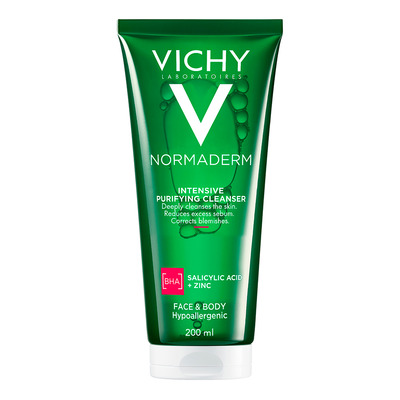Vichy Normaderm Intensive Purifying Cleanser er udviklet til at tackle de mest almindelige hudproblemer. Med en kraftfuld blanding af salicylsyre og zink går denne rensegelé målrettet efter ar fjerne overskydende talg og urenheder, hvilket resulterer i en klarere og renere hud.