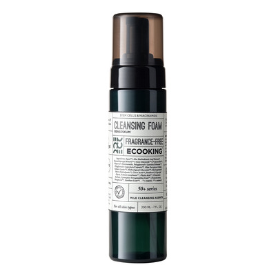 Ecooking har udviklet dette bløde renseskum, som ved hjælp af milde renseaktiver vasker huden skånsomt fra skidt, snavs og produktrester samtidig med at tilføre den liv og forbedre dens struktur. Skummets formel er nemlig beriget med plantestamceller fra vilde oliventræer, der virker energigivende og tonende. Derudover indeholder den beskyttende niacinamid, fugtgivende panthenol og beroligende aloe vera, der plejer i dybden og øger hudens elasticitet, så fine linjer udglattes. Resultatet bliver en ren, frisk og blød hud, der synes sundere og mere ungdommelig.
