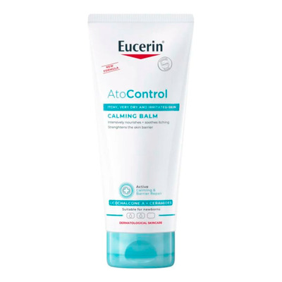 Eucerin AtoControl Calming Balm er en hurtigindtrængende og fugtgivende balm, der er udviklet til daglig pleje af tør og sart hud med tendens til kløe og irritation. Den indeholder licochalcone A, ceramider og sheasmør, som styrker hudbarrieren og lindrer ubehag. Dens formel er uden tilsat parfume og kan anvendes af både voksne, børn og nyfødte med sensitiv hud. Balmen absorberes hurtigt og efterlader huden blød og behagelig.
