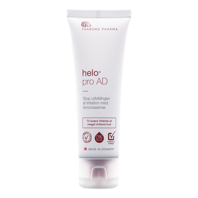Denne nye variant af Faaborg Pharmas ikoniske Helo-creme er udviklet specielt til atopisk eksemhud. Cremen indeholder det aktive stof Annonasense, som ved hjælp af en anti-inflammatorisk effekt modvirker irritation og kløe, mens andre ingredienser understøtter hudens heling samt styrker dens egen beskyttende barriere. Den indeholder blandt andet også fugtgivende aktiver samt niacinamid (vitamin B3), panthenol (vitamin B5), E-vitamin og stoffet Actibome. Efter et par ugers brug genopbygges huden, og den efterlades både sundere og blødere.