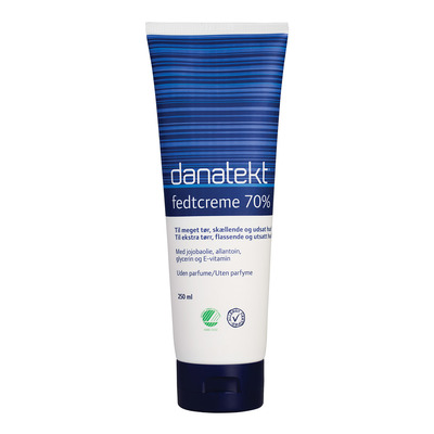 Danatekt Fedtcreme 70% er særlig udviklet til pleje af meget tør og skællende hud på kroppen. Fedtcremen kan bruges af både børn og voksne. Den er med til at pleje, blødgøre og tilføre fugt til huden, samtidig med den hjælper med at genopbygge hudens naturlige beskyttelsesbarriere. Cremen er let at påføre og absorberes hurtigt i huden. Den har et fedtindhold på 70% og er desuden uden tilsat parfume samt Svanemærket og Allergy Certified mærket.