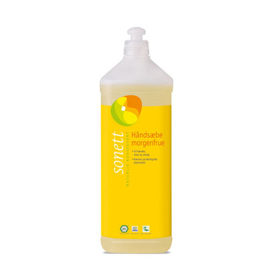 Sonett Håndsæbe Morgenfrue er fremstillet af 100 % økologiske eller biodynamiske planteolier og æteriske olier. Den blide formel renser skånsomt uden at udtørre huden, hvilket gør sæben velegnet til både hænder, ansigt og krop. Sæben har en naturlig og behagelig duft af morgenfrue, der giver en frisk følelse efter hver vask.