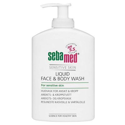 Liquid Face & Body Wash fra Sebamed Sensitive Skin vasker hele kroppen og ansigtet med