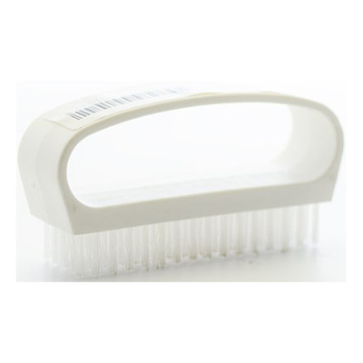 Hvid neglebørste med håndtag af hård plast og børster af polyester. Neglebørsten har et ergonomisk greb, så det er nemt at rengøre dine negle.