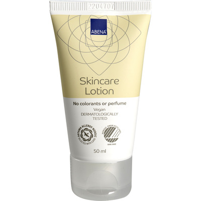 Abena hudlotion 50 ml passer lige som taskestørrelse og kan med fordel anvendes på farten eller på rejser.