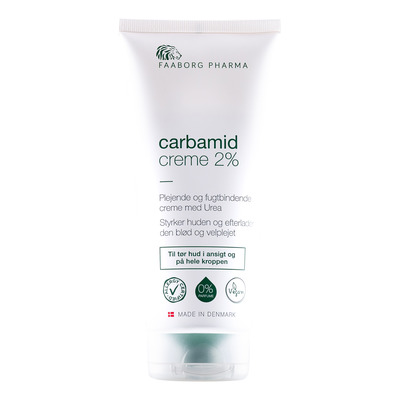Denne Carbamid Creme fra Faaborg Pharma er specielt fremstillet til at pleje meget tør og ru hud samt aktivere hudens naturlige fugtbevarende egenskab. Cremen indeholder 5% af stoffet carbamid, som egentlig er et af kroppens naturlige stoffer. Carbamid er også kaldet urea, og har en opblødende egenskab på huden. Samtidig bidrager det til at holde på hudens naturlige fugt, da det styrker den beskyttende barriere. Cremen med et fedtindhold på 22% trænger hurtigt ind i huden, og virker fugtbindende med det samme.