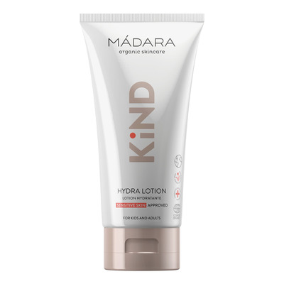 Denne milde bodylotion fra Mádaras Kind serie fugter og plejer en sart og følsom hud. Den efterlader huden dejlig blød. Bodylotionen indeholder naturlige ekstrakter af multebær og hørfrø, der hjælper med at genopbygge huden og styrke hudens naturlige barriere. Denne bodylotion er udviklet til hele familien og er skånsom overfor babyers hud. Derudover er den dermatologisk testet og vegansk.