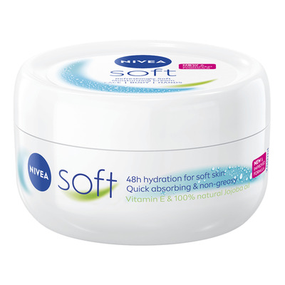 Nivea Soft Cream er en intensivt fugtgivende creme til både krop, hænder og ansigt. Cremen er lavet på en let formel med vitamin E og naturlig jojobaolie, som fugter huden i op til 48 timer. Den absorberes hurtigt i huden og er velegnet til alle hudtyper. Soft cremen er lavet på en vegansk formel og er desuden dermatologisk testet.