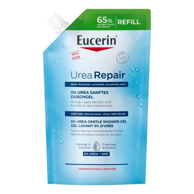 Eucerin UreaRepair 5% Urea Gentle Shower Gel Refill renser skånsomt hudens overflade og modvirker udtørring