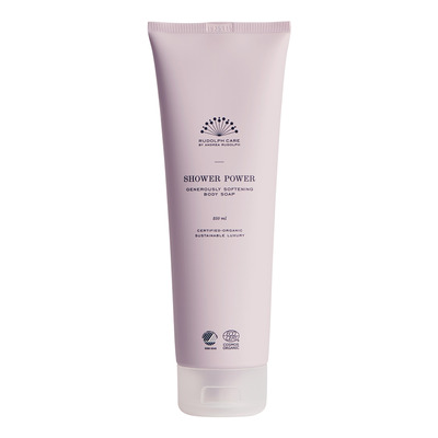 Shower Power dufter af Rudolph Cares naturlige signaturduft, men er uden tilsætning af allergene parfumestoffer. Den gelagtige konsistens skaber et silkeblødt skum, når den masseres mellem hænderne. Shower Power bærer certificeringerne Svanemærket, COSMOS og Vegan Trademark.