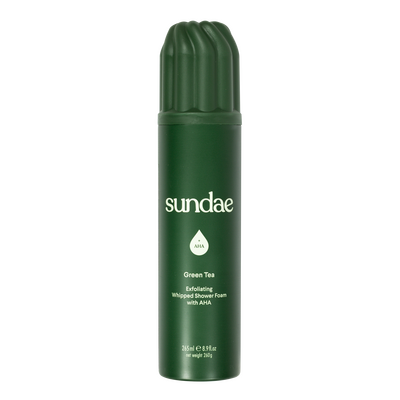 Sundae Exfoliating Whipped Shower Foam Green Tea er en eksfolierende bodywash med AHA og duft af grøn te