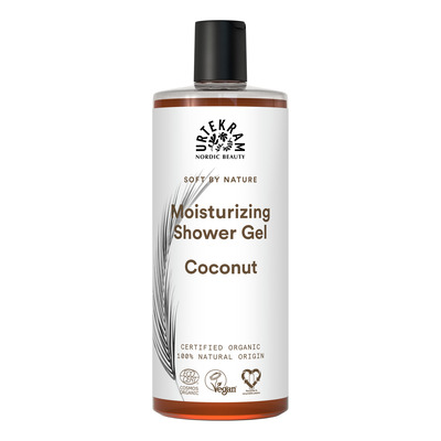 Coconut Showergel fra Urtekram er baseret på økologisk kokosnektar og udviklet specielt til skånsom rengøring af huden. Den indeholder blandt andet det milde, vaskeaktive stof, kokosglukosid, samt diglycerin, som virker naturligt fugtgivende og reducerer vandfordampningen fra huden, så den naturlige væskebalance opretholdes. Aloe vera-ekstrakt og E-vitamin bidrager med helende egenskaber, mens æterisk appelsinolie og kokos giver sæben en sød og let duft.