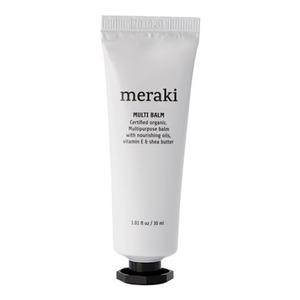 Denne multifunktionelle balm kan bruges til alverdens formål - tør hud, sprukne læber, tørre hænder, udslæt eller rifter. Meraki Multi Balm er beriget med bl.a. sheasmør og mandelolie, der medvirker til, at genoprette hudens naturlige fugtbalance og opretholde hudens elasticitet. Ydermere indeholder balmen solsikkeolie, der er rig på E-vitamin, som beskytter huden mod frie radikaler.