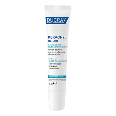 Ducray Keracnyl Repair Lip Balm giver intensiv pleje til sprukne og udtørrede læber under aknebehandling
