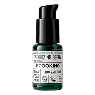 Ecooking Energizing Serum er udviklet til at tackle ældningstegn ved at stimulere hudens cellefornyelse og forbedre dens elasticitet. Dette serum er en del af 50+-serien fra Ecooking. Det indeholder stamceller, der er kendt for deres evne til at reparere og udvikle nye celler, hvilket fører til forbedret hudkvalitet og mindskede ældningstegn.