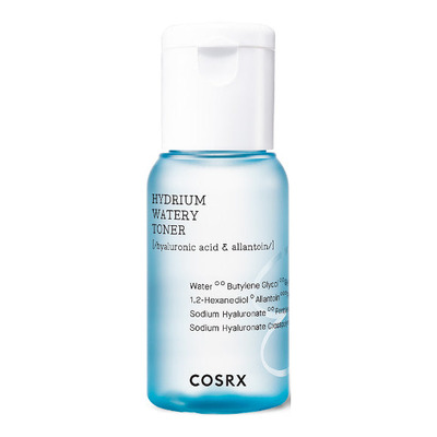 COSRX Hydrium Watery Toner er en praktisk rejsestørrelse fra COSRX's Hydrium-linje, der specielt er formuleret til tør og dehydreret hud. Toneren indeholder seks forskellige typer hyaluronsyrer, som trænger dybt ind i huden og giver intens fugt. Panthenol i toneren har en beroligende effekt på huden og reducerer rødme og irritation, hvilket gør den ideel til sensitiv hud.