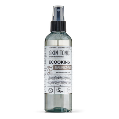 ECOOKING Skintonic er en forfriskende og opstrammende mist til ansigtet, som tilfører huden fugt, pleje og lukker porerne efter den daglige plejerutine. Samtidig kan den også anvendes som en opfriskende ansigtsmist på en varm sommerdag. På grund af sit høje indhold af E-vitamin kan produktet skumme ved påføring.
