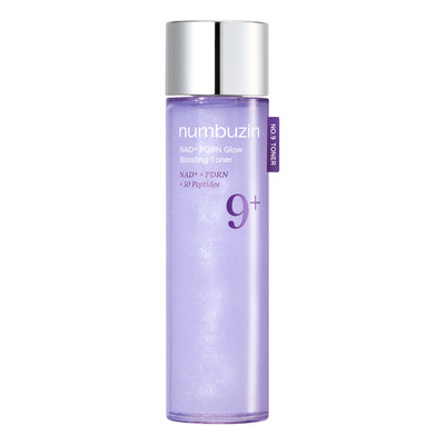 Numbuzin No.9+ NAD+ PDRN Glow Boosting Toner er en essenslignende toner, der fugter i dybden og giver huden en øjeblikkelig glød. Den indeholder ceramidbaserede perler og 50 peptider, som hjælper med at forbedre hudens spændstighed og udjævne porer. Formlen er beriget med NAD+ og 100 % ren PDRN fra laks, der styrker hudbarrieren og støtter hudens sundhed og udstråling.