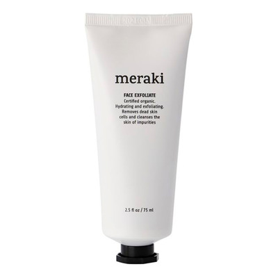 Face Exfoliate fra Meraki er en mild og blød eksfolieringsgel, som skånsomt renser huden, stimulerer blodcirkulationen, fremmer cellefornyelsen og booster hudens fugtniveau. Den indeholder blandt andet anti-aging ekstrakter fra brune alger samt nærende rapsolie, der begge er rige på antioxidanter. Herudover sikrer fint pulveriserede abrikoskerner dig en skånsom fjernelse af døde hudceller, hvilket efterlader huden blød og lækker med en smuk naturlig glød.
