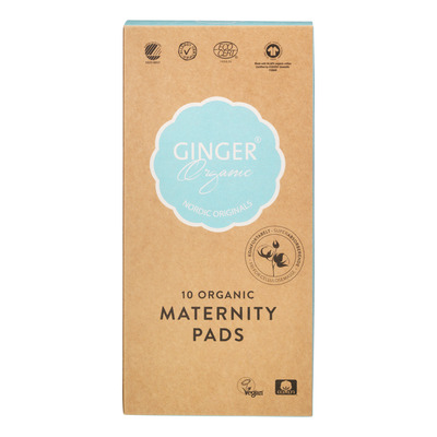 Ginger Organic efterfødselsbind fremstillet af 100% økologisk bomuld og bionedbrydelig emballage