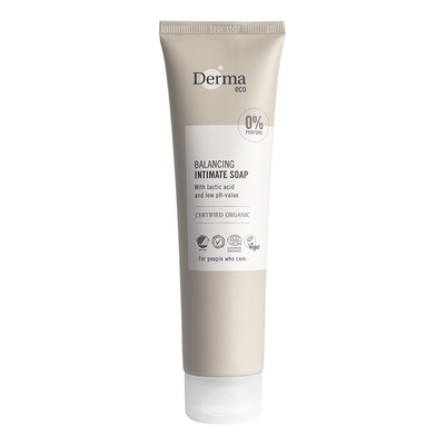 Derma Eco Intimate Soap er en mild og uparfumeret intimsæbe, der har en lav pH-værdi, som giver en sund intimbalance. Intimsæben er lavet med mælkesyre, der bevarer og regulerer den naturlige pH-balance samt økologisk aloe vera og glycerin, der modvirker udtørring og irritation.