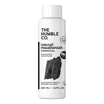Natural Mouthwash fra The Humble Co. er et mildt, men yderst effektivt mundskyllemiddel baseret på naturlige ingredienser. Den indeholder blandt andet ekstrakter fra gojibær, grøn te og panax ginseng samt aloe vera, som virker helende og styrkende på tandkødet. Denne variant indeholder desuden aktivt kul, som virker rensende på tænder og tandkød.