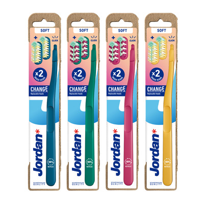 Jordan Change 2 heads + 1 handle - Soft er en tandbørste, der er designet med fokus på bæredygtighed og effektivitet
