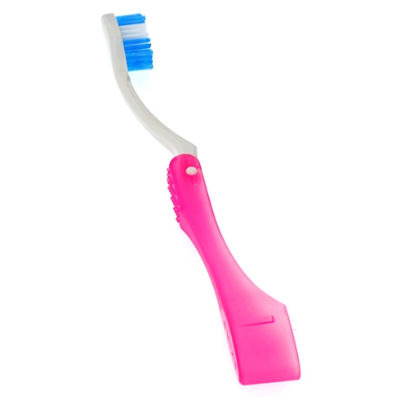 EKULF TravelBrush er en blød rejsetandbørste med et beskyttelseshylster som anvendes som håndtag, når tandbørsten er i brug. Findes i farverne lyserød, lilla, blå og grøn.