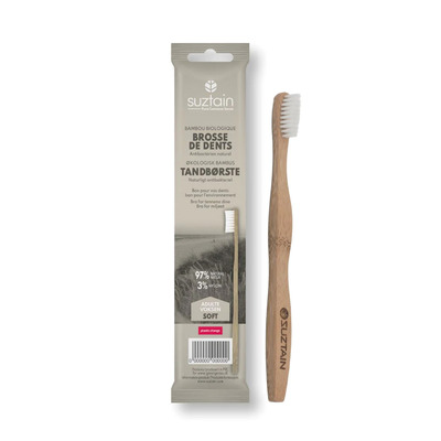 Bambustandbørste fra Suztain med hvide børstehoveder i soft