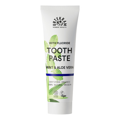 Mint Tandpasta fra Urtekram er udviklet specielt til daglig beskyttelse af dine tænder og tandkød. Den indeholder blandt andet fluor, som giver langvarig beskyttelse mod karies og plak. Derudover indeholder tandpastaen økologiske ekstrakter fra aloe og magnoliebark, myrra og æteriske mynteolier, som giver produktet en dejlig, forfriskende smag.