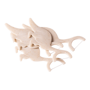 The Humble Co. Kids Floss Picks Strawberry er tandtrådspinde til børn, fremstillet med plantebaserede materialer og polypropylen. Hovedingrediensen i skaftet er majsstivelse. Flosset er lavet af polyethylen og har en naturlig jordbærsmag, der kan gøre tandrensning mere motiverende for børn. Formen er udformet som en dinosaur for at gøre brugen mere børnevenlig.