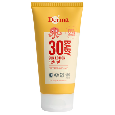 Derma Eco Baby Sollotion SPF30 er en skånsom og vandfast sollotion med høj beskyttelse