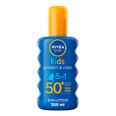 Nivea Kids Protect & Moisture Spray SPF50 giver høj og øjeblikkelig UVA/UVB-beskyttelse til børns sarte hud. Solcremen er ekstra vandfast, hvilket gør den ideelt til aktive børn, der leger og bader i solen. Sprayen er beriget med panthenol, C- og E-vitamin, som beskytter hudens barriere og forhindrer udtørring. Den hurtigtabsorberende formel sikrer nem påføring og en behagelig hudfølelse.