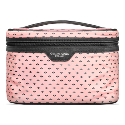 Gillian Jones Beautyboks i rosefarvet m. sort print er den ideelle løsning til opbevaring af dine skønhedsprodukter. Denne boks er fremstillet af 100% genanvendt plastik. Den er designet med en gennemsigtig lynlåslomme i låget, så du nemt kan se, hvad der er indeni, samt en indvendig mesh-lomme til mindre genstande. Den måler L25,5 x H17 x B14 cm og er rummelig nok til alle dine nødvendigheder. Nylonmaterialet udvider sig efter behov. Den store lynlås-puller gør det nemt at åbne og lukke boksen og dens materialer tillader maskinvask ved 30 grader.
