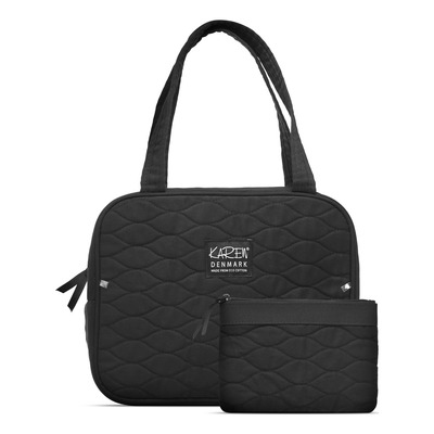 Dette 2-delte toilettaske sæt fra Karen består af en lille makeuppung, der er velegnet til mindre og skrøbelige ting, som du vil passe ekstra godt på. Derudover består sættet af en stor og rummelig toilettaske, der kan indeholde alle dine nødvendige produkter. Begge tasker er lavet i et klassisk, sort design og med et Karen logo på fronten. Taskerne er lavet i økologisk bomuld og den store toilettaske er indrettet med fire indvendige lommer samt to hanke, der gør den nem at hænge op og giver et godt overblik over dine produkter.