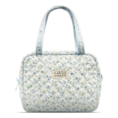 Karen Toilettaske med hank i blåt småblomstret quilt er en praktisk og rummelig toilettaske til opbevaring af produkter