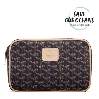 Vittorio Light Weight Toilettaske er det optimale valg for den miljøbevidste rejsende. Den er designet med omtanke for planeten. Toilettasken har en letvægtskonstruktion og rummeligt interiør, der gør den ideel til alle dine toiletartikler. Udover sit miljøvenlige fodspor, leverer toilettasken også funktionalitet og stil med et iøjnefaldende grafisk print. Dens smarte opbygning med et stort hovedrum og flere lynlåslommer sikrer, at dine personlige plejeprodukter forbliver organiserede og sikre, uanset hvor du befinder dig. En praktisk og stilet tilføjelse til din rejse.