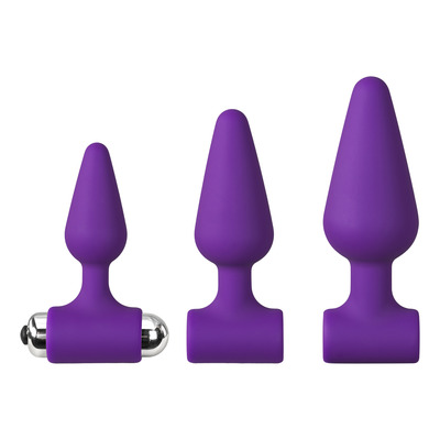 Baseks begynder vibrerende butt plug sæt er et komplet sæt med tre butt plugs og aftagelig vibrator