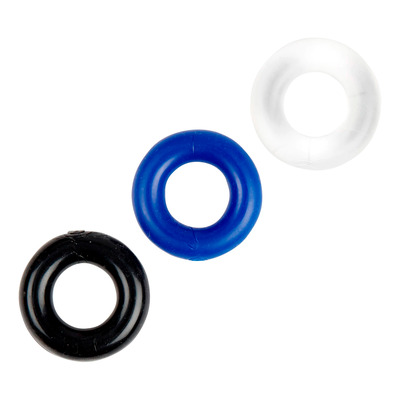 Baseks Triple Penisring Sæt indeholder tre fleksible penisringe til længere og hårdere erektioner