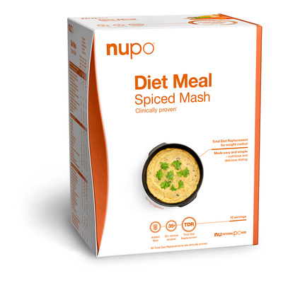 Nupo Diet Meal Spiced Mash er en praktisk måltidserstatning med smag af klassisk kartoffelmos tilsat krydderier og grøntsager. Hver portion indeholder kun 121 kcal og fungerer som del af en Total Diet Replacement (TDR) plan. Kartoffelmosen er klinisk dokumenteret til vægtkontrol og kan anvendes som eneste næringskilde i op til otte uger efter anvisning. Nupo Spiced Mash er fri for gluten, laktose, æg, soja og nødder samt er både vegansk og vegetarisk.