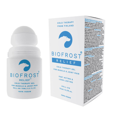 Biofrost giver dulmende smertelindring og begrænser betændelse, hævelse, ledsmerter, kroniske smerter samt muskel- og rygsmerter. Produktet køler også musklerne ned, så du restituerer hurtigere oven på skader og træning.