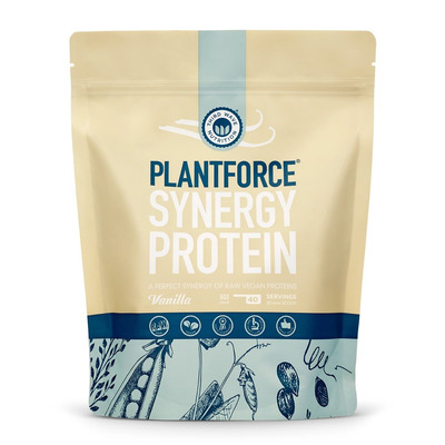 Plantforce Synergy Protein er en perfekt synergi af lavallergene og komplementære RAW plantebaserede proteiner. Fås i varianterne natural, vanilje og chokolade.