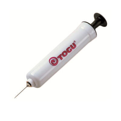 Lille pumpe med studs der er tilpasset TOGU Dynair siddekiler, massageruller og siddepuder.